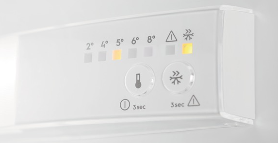 - A hűtőszekrényben riasztás, piros figyelmeztető lámpa, villogó háromszög látható vagy csipogás hallható